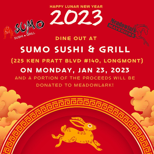 Enjoy lunch or dinner at Sumo Sushi and Grill on Monday, January 23rd (11:00 am – 3:00 pm and 4:30 pm – 9:30 pm) and 10% of the restaurant’s proceeds for the day will be donated to Meadowlark! Did you know? The owners are a Meadowlark family themselves and we appreciate their generous support!