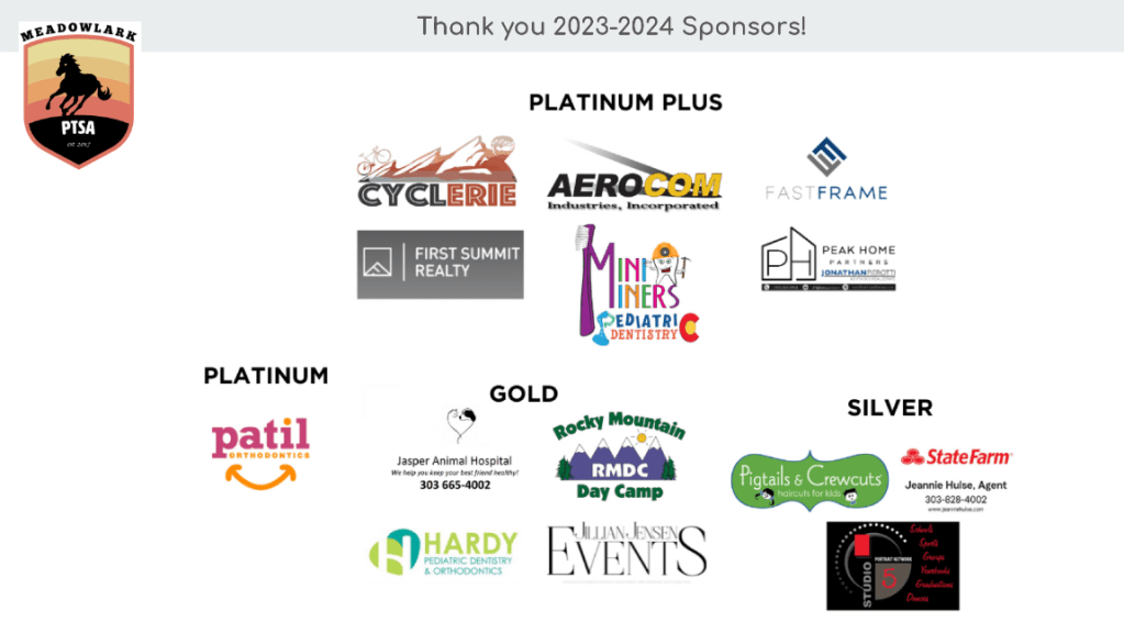 Please THANK our 2023-2024 PTSA “Free Money” Sponsors for their financial contributions and please sign up if you use these business – its no cost to you but gives back to MEADOWLARK: