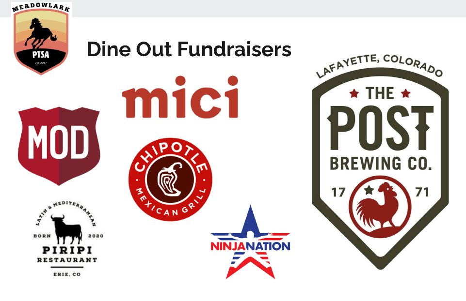 Please THANK our 2023-2024 local DINE OUT local businesses who partnered with our PTSA in providing more FUN ways to give back to MEADOWLARK in our Community!