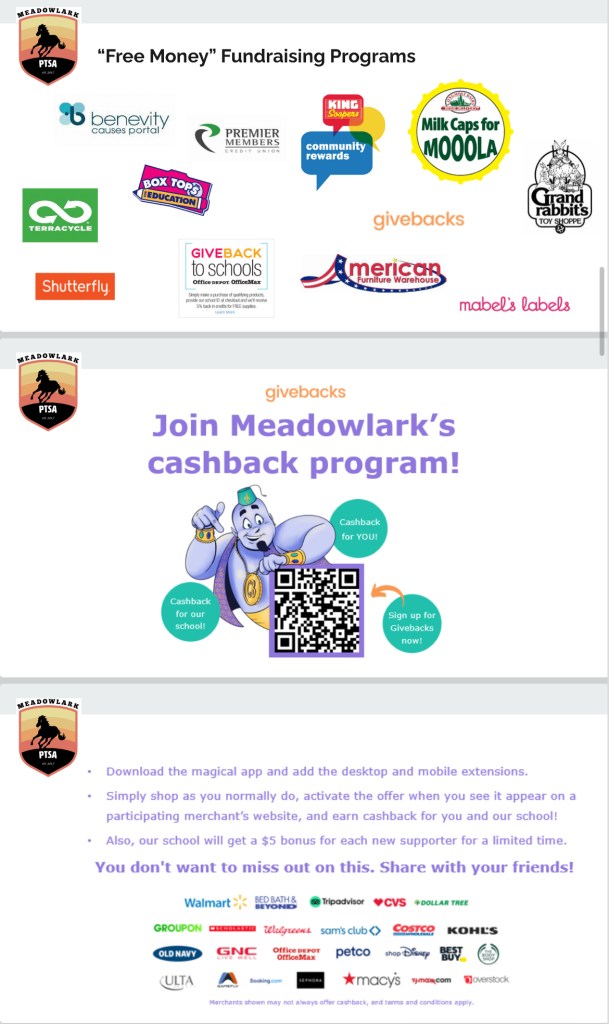 2024-2025 PTSA Board is always looking for “free money programs” available to add to Meadowlark. These programs are always changing so please continue to check back at the programs available and tutorials on how to link your accounts. Please continue to check back to our page in the 2024-2025 School Year and reach out to secretary@mavsptsa.org for questions on our Free Money Programs in the 2024-2025 School year.