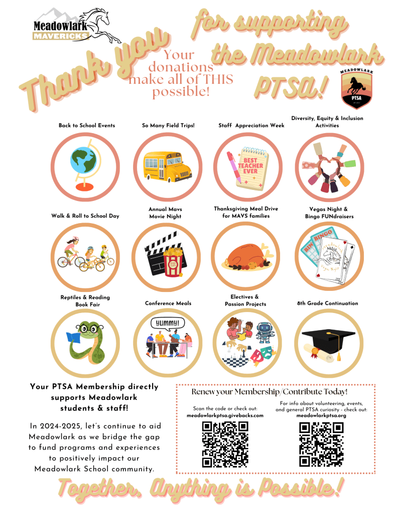 We are beyond grateful for your incredible support of the PTSA. Your contributions, both big and small, have made a profound impact on our students, teachers, and staff, helping us create meaningful experiences and provide essential resources throughout the year. 🎉