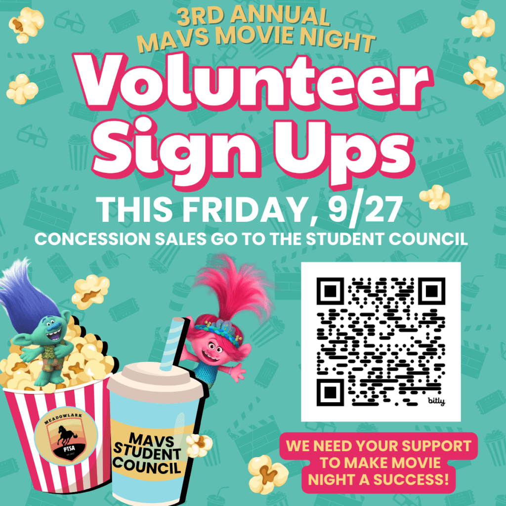 Join the PTSA and your fellow Mavericks for Mavs Movie Night on the Field THIS FRIDAY! This year, our featured film is Trolls Band Together!